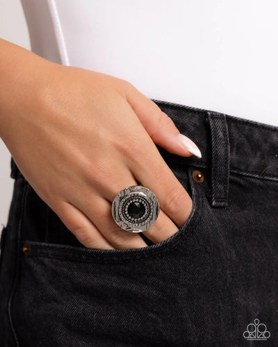 Paparazzi “Glistening Grotto” Black Stretch Ring - Paparazzi Accessories