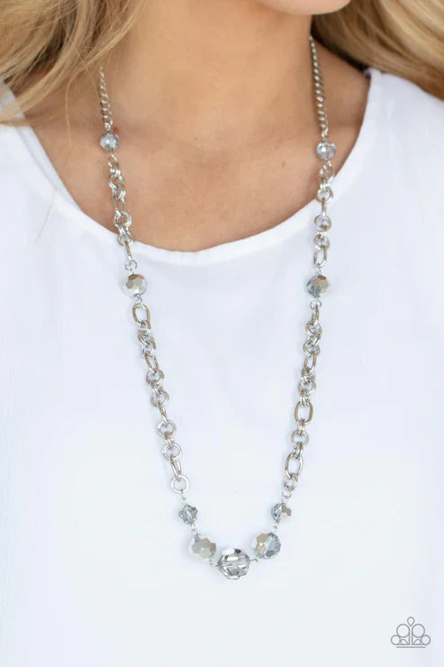 Prismatic Pick-Me-Up - Silver Metallic Bead Long Necklace - Paparazzi